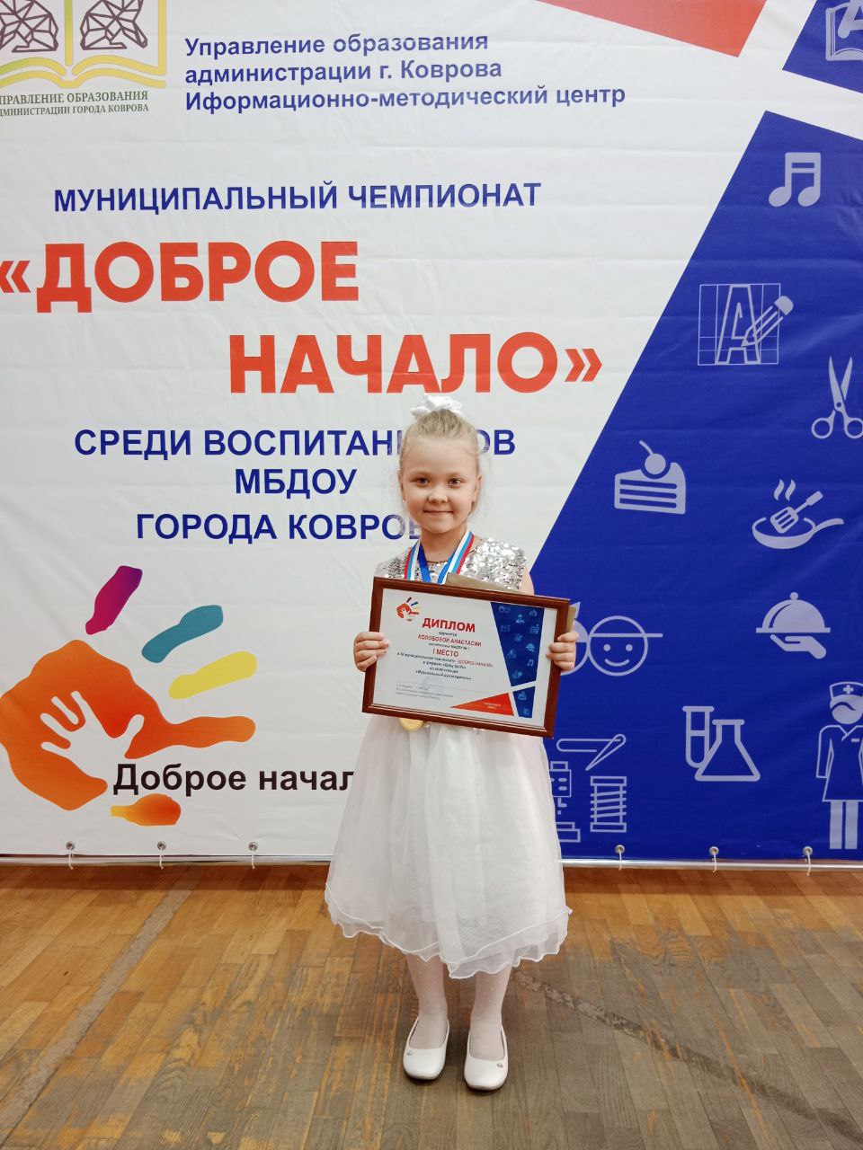 В компетенции "Музыкальный руководитель" - Колобова Анастасия, воспитанница группы "Затейники" завоевала Диплом 1 степени,